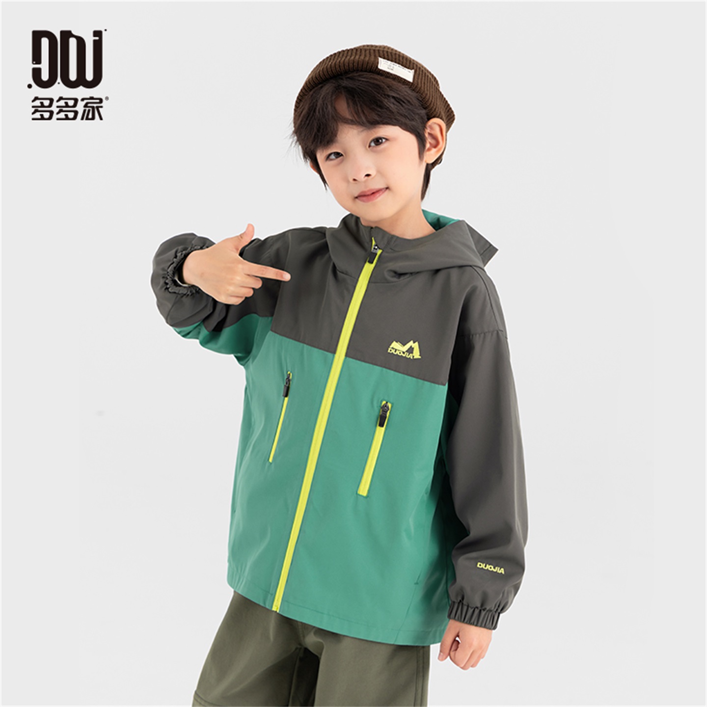 多多家男童外套户外2025春秋新款 儿童拼接撞色刺绣男孩连帽上衣潮
