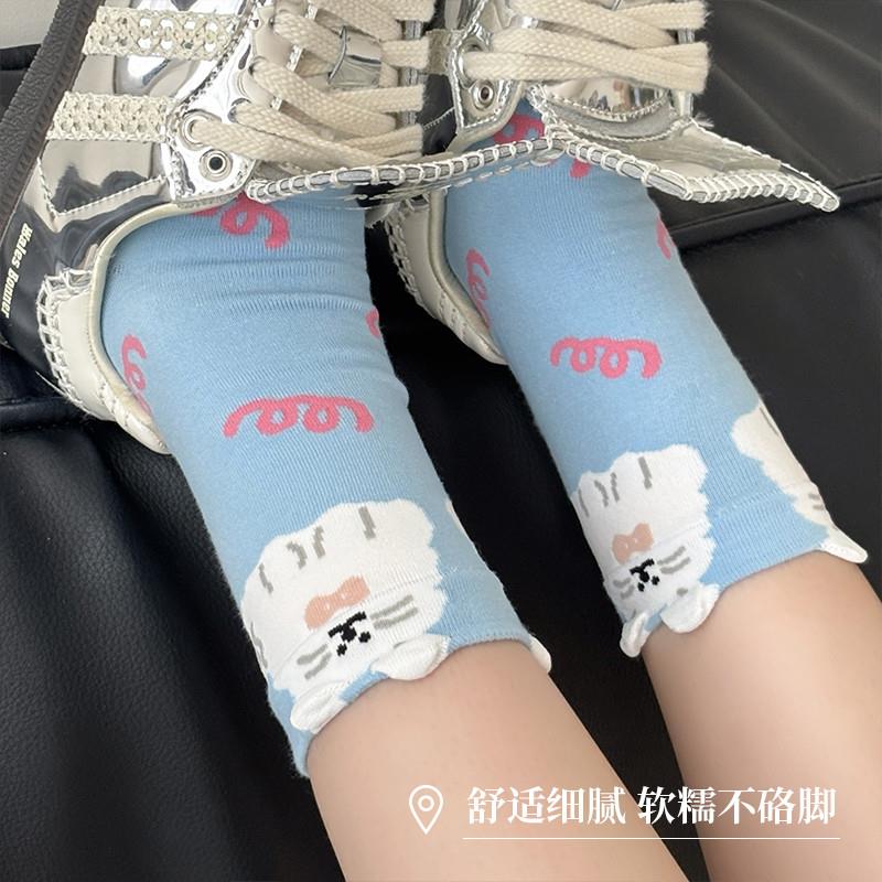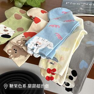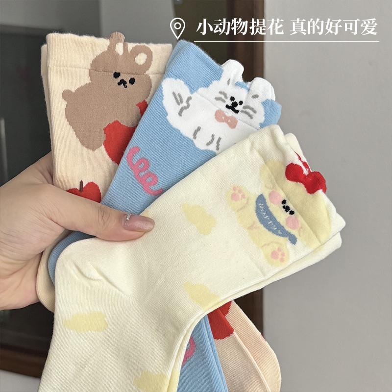 立体春秋夏季 小狗纯棉中筒袜卡通ins潮袜日系搞怪长袜灰色蓝色