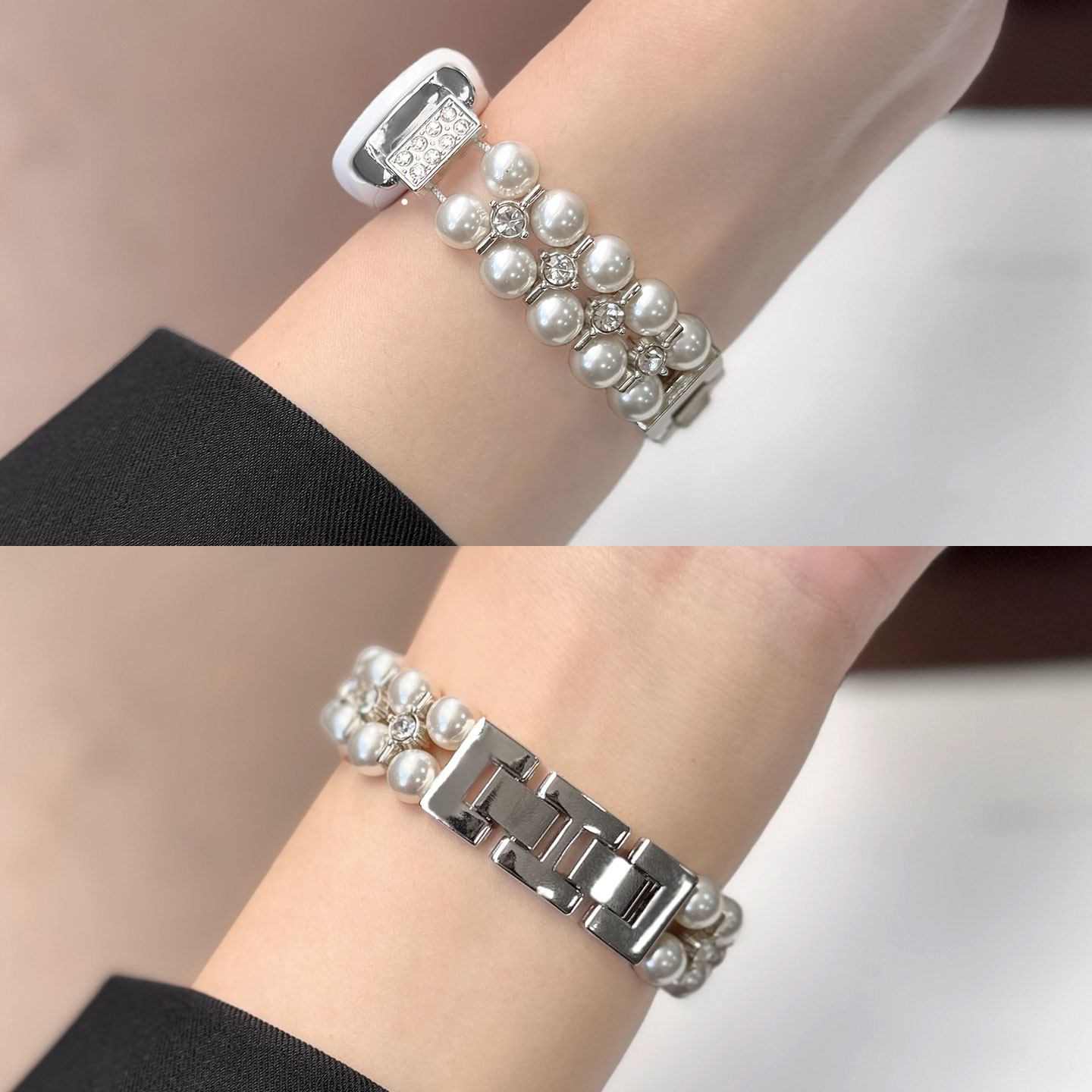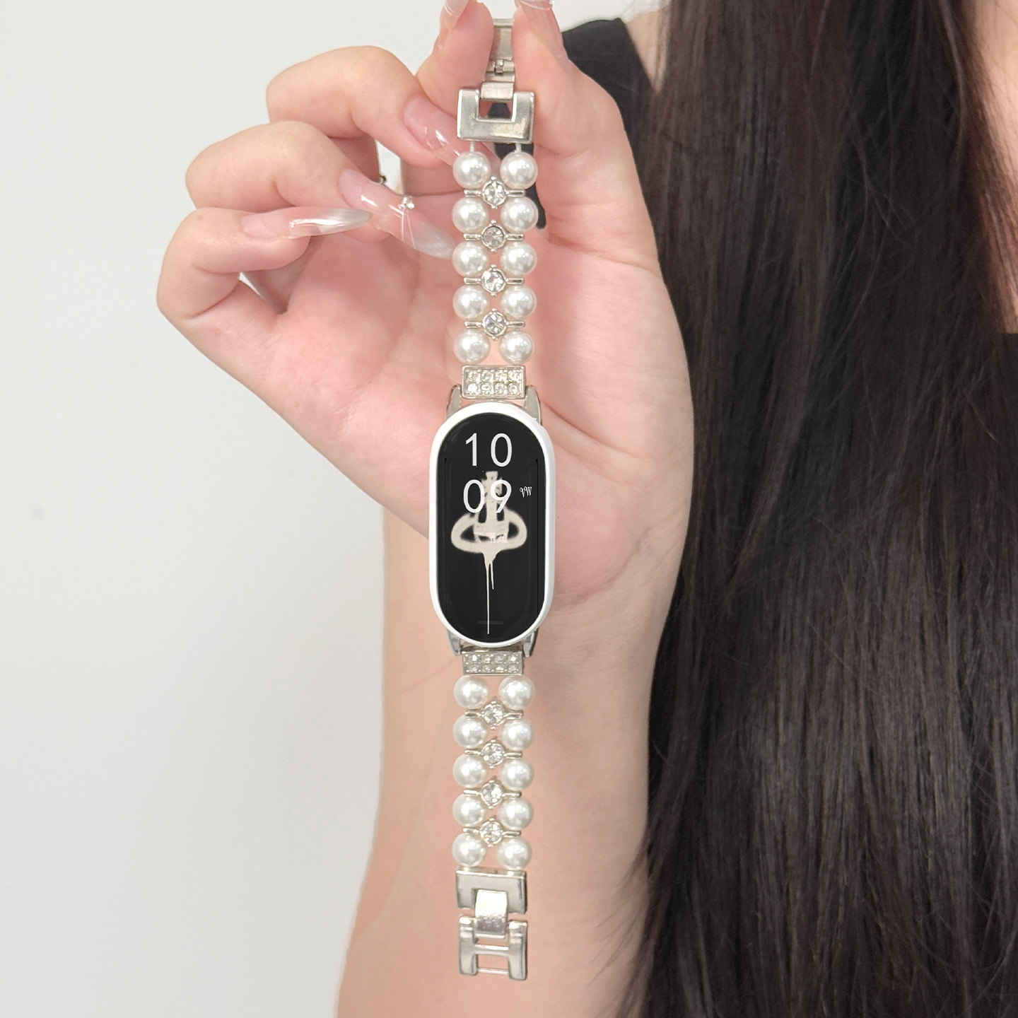 5智能运动手腕带高级时尚 适用小米手环10表带新款 8表带女士夏天小米7 十代替换配件表壳 珍珠手链小米手环9