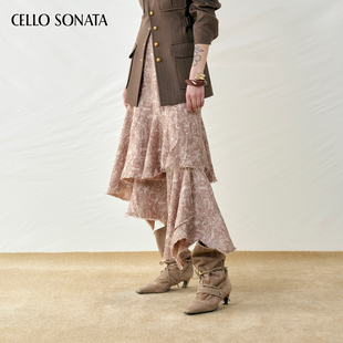 设计师款 不规则拼接绑带半身长裙18465928 佐丹奴复古格纹裙女新款