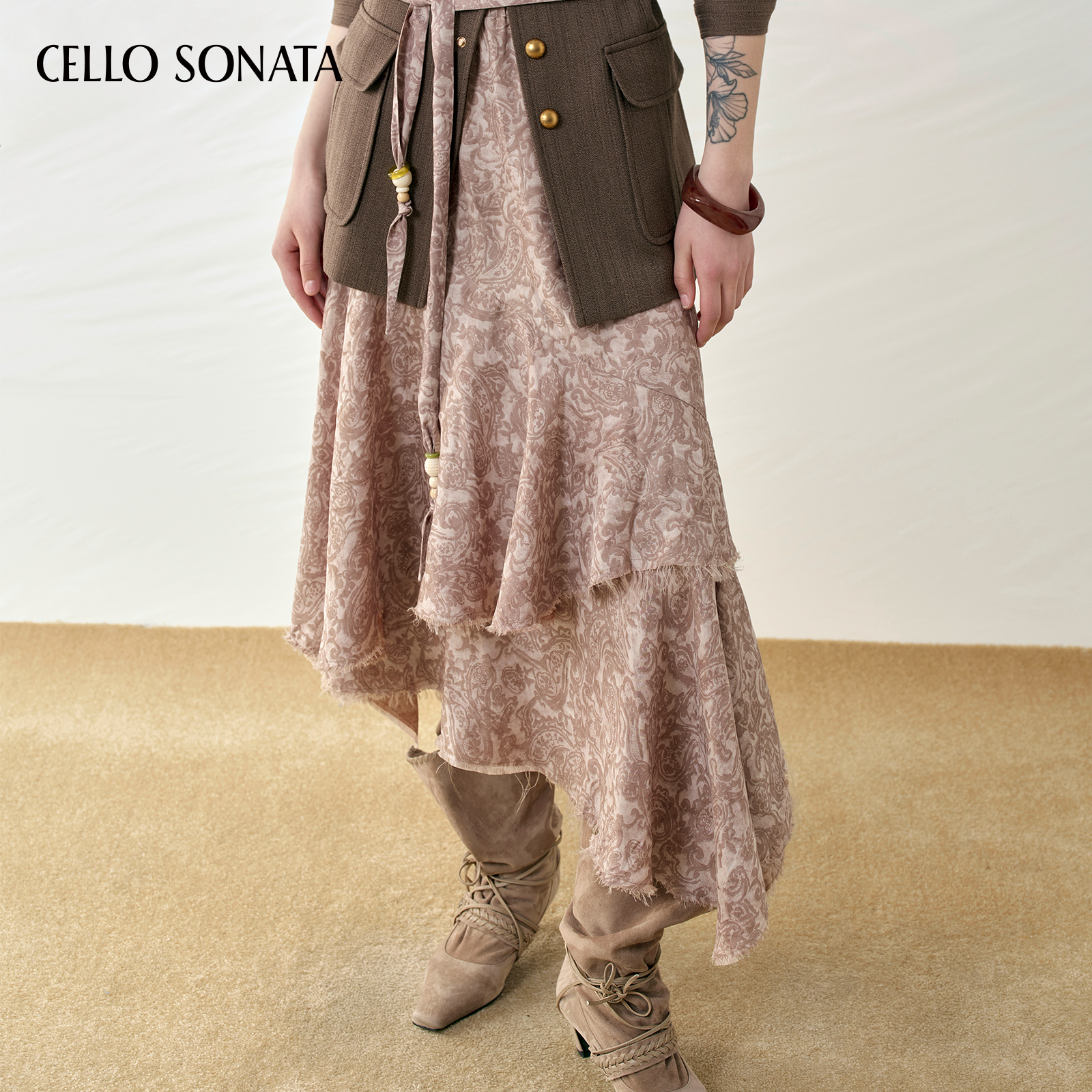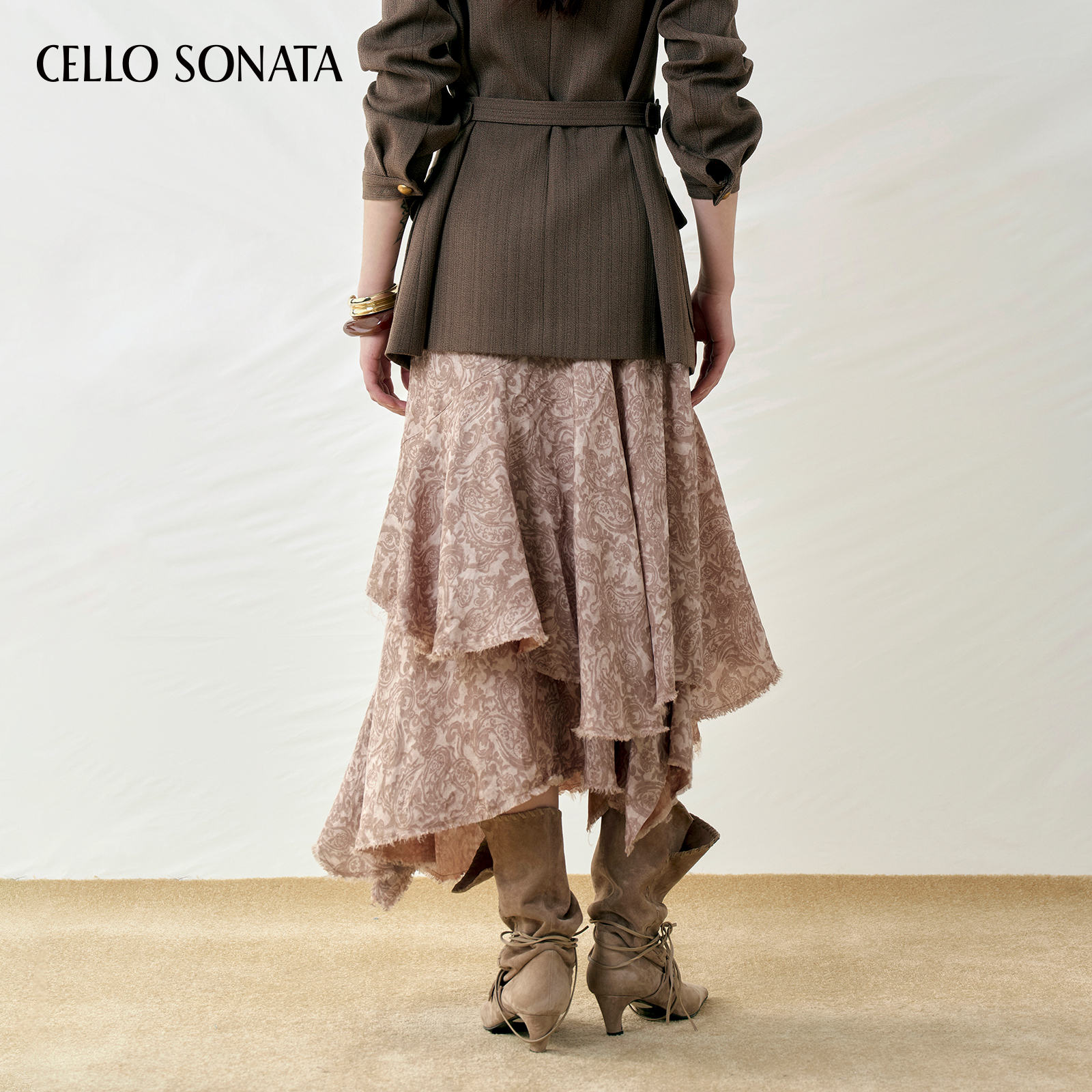 509092 气质流苏摆不规则半身裙子女装 三福格子长裙女2025新款 冬季
