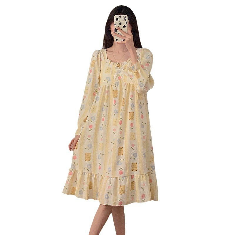 开衫 都市丽人纯棉睡衣女春秋款 2025新款 套装 甜美家居服 带胸垫长袖