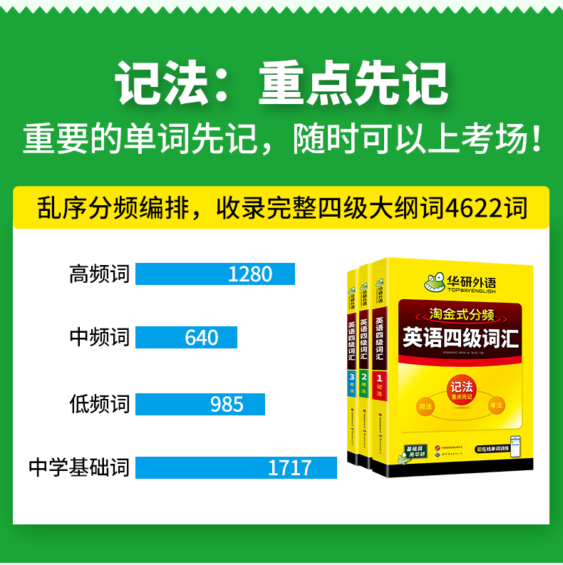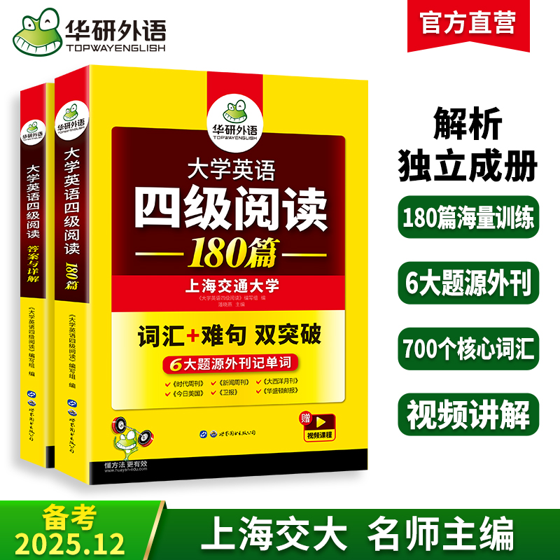 华研外语备考2025年大学英语四级淘金式 英语高频核心单词书阅读理解专项训练书四六级资料cet46考试听力 分频词汇阅读180篇套装