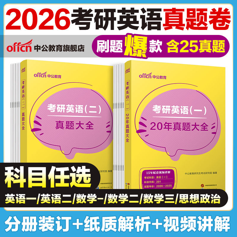 中公教育全国硕士研究生招录考试用书考研英语2026年英语一英语二历年真题大全2026考研政治刷题真题模拟卷狂背清单资料含视频解析