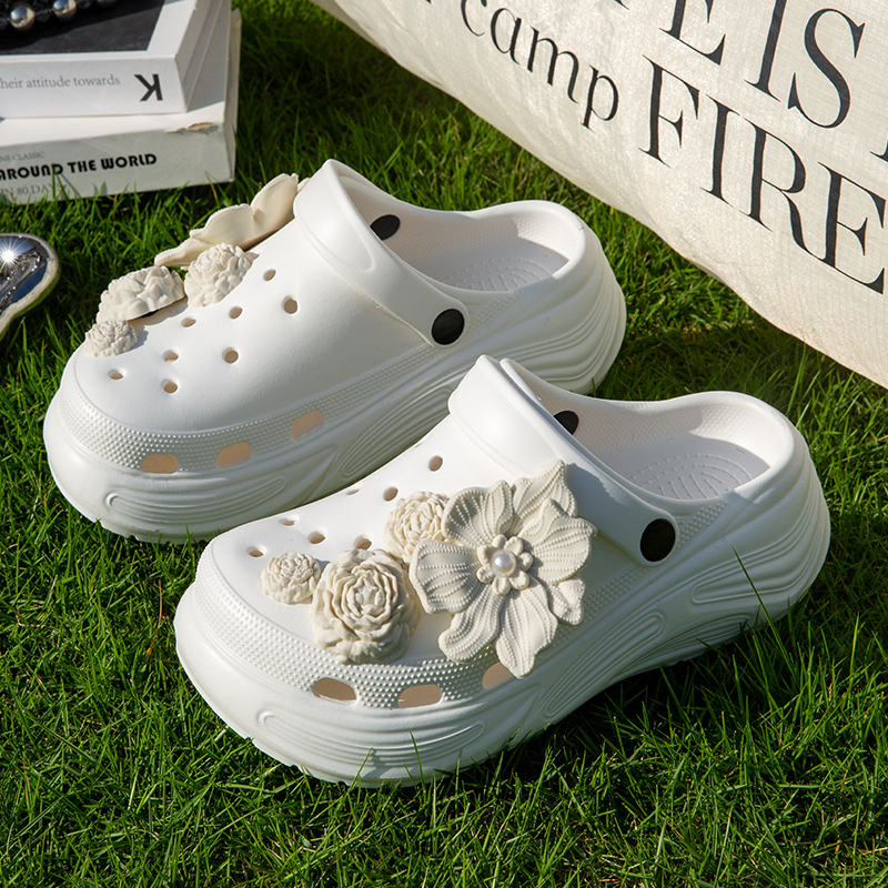 夏季 沙滩足弓支撑eva防臭厚底包头凉鞋 外穿女 女款 孕妇防滑洞洞鞋