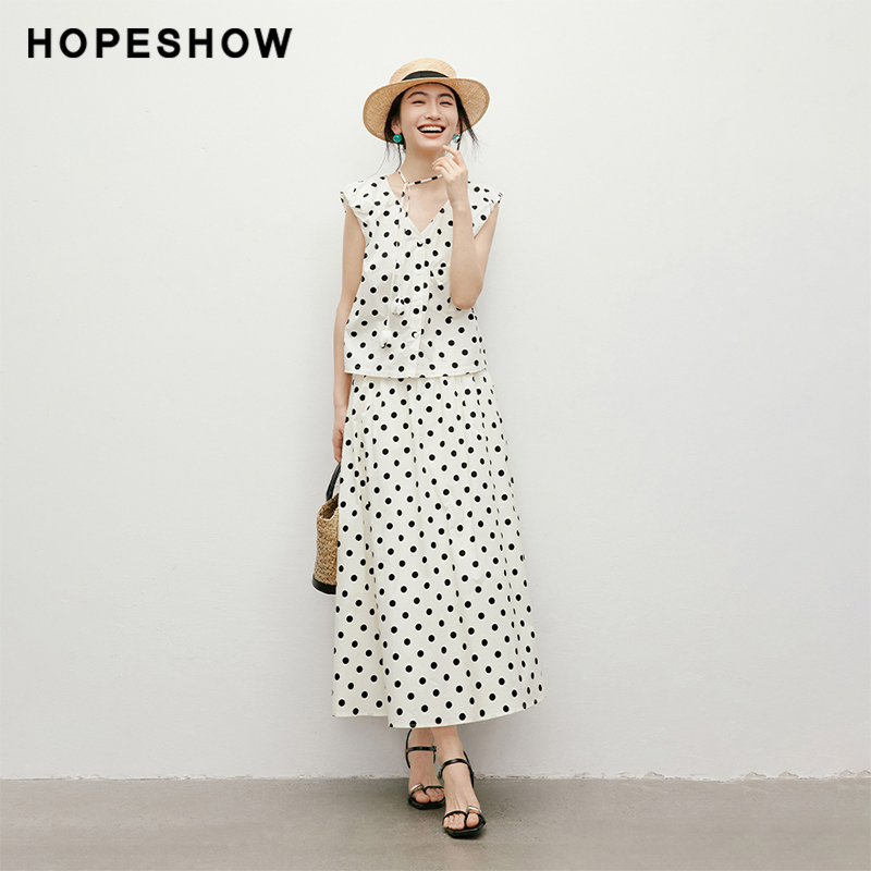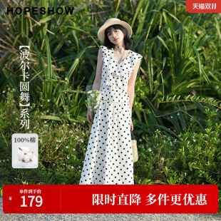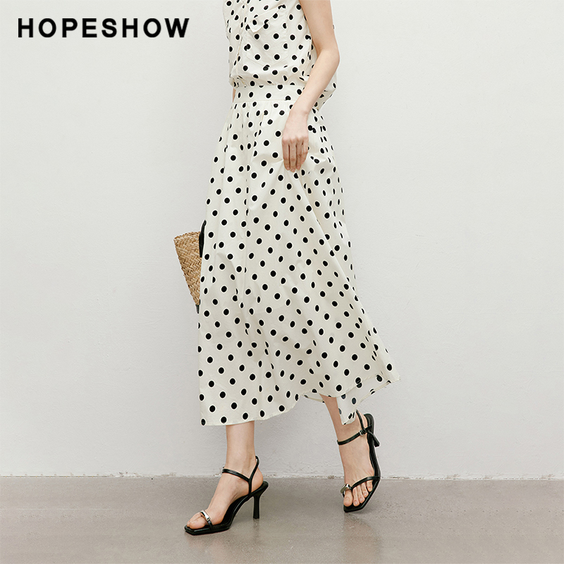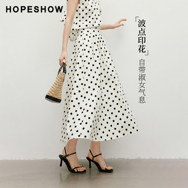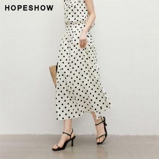 波尔卡圆舞 红袖 女装 新款 复古波点A字侧拉宽腰半身裙 2025夏季