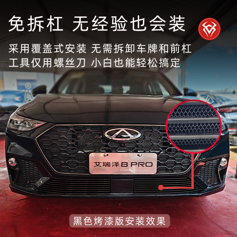 适用于奇瑞艾瑞泽8pro防虫网前脸中网外观改装 饰汽车用品配件 件装