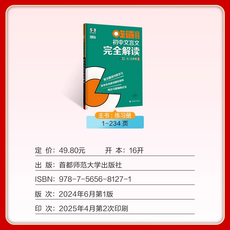 2026版 曲一线53吃透初中文言文完全解读五年中考三年模拟七八九年级全国通用五三专项练习册新中考基础题型训练小古文古诗词详解析