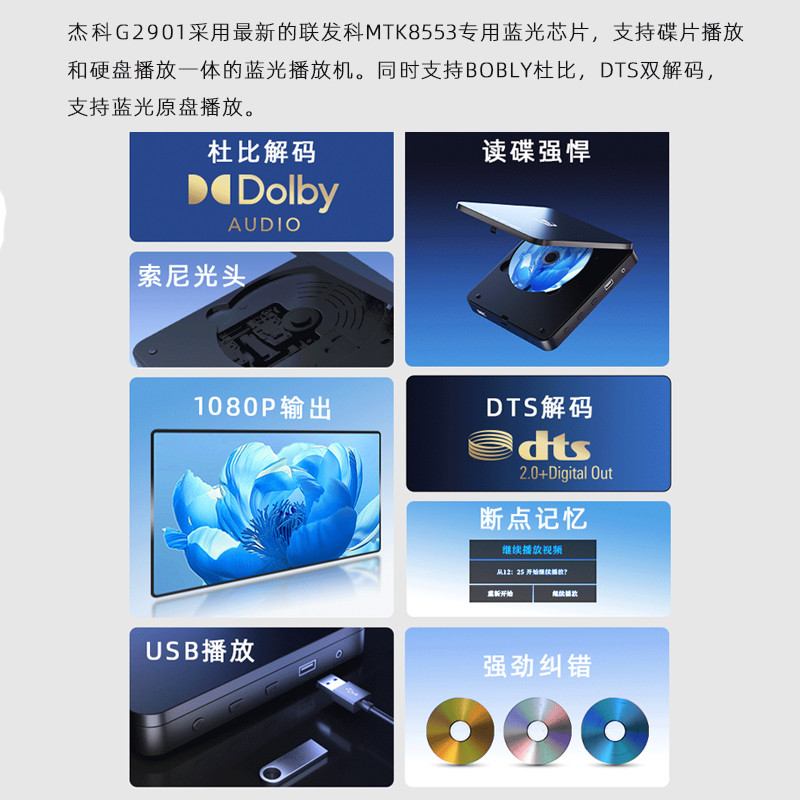 杰科迷你便携式 蓝光高清DVD影碟机VCD播放机CD音视频播放器G2901