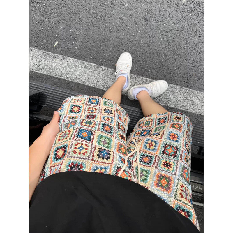 复古扎染短裤 夏季 新款 摩朝美式 微胖子中裤 男士 潮流宽松五分裤 大码