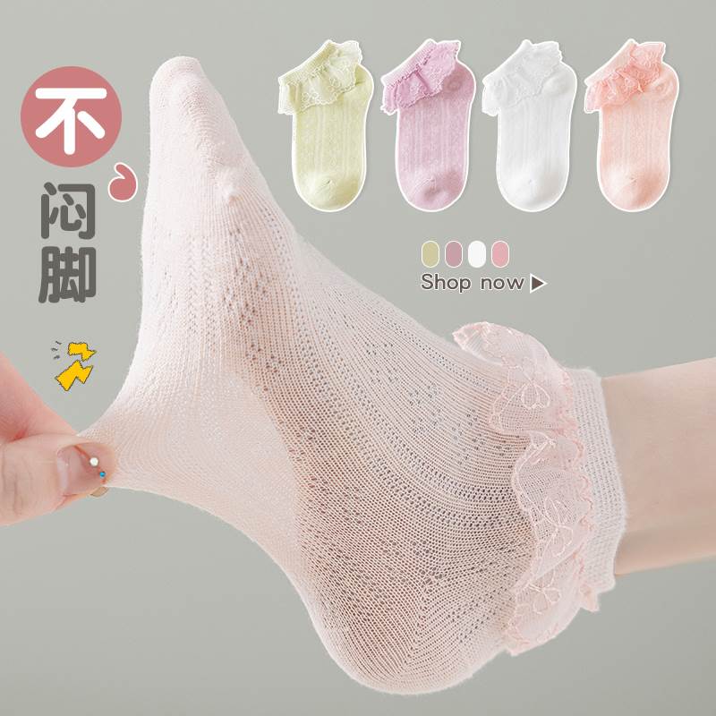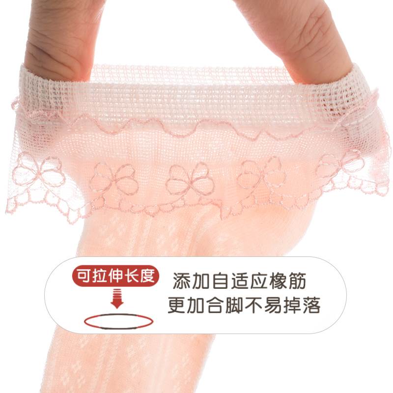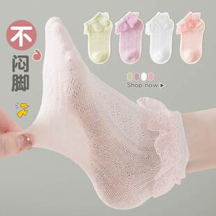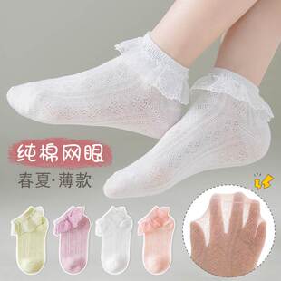 女童袜子纯棉秋季 儿童女孩公主蕾丝春秋花边袜宝宝白色网眼袜 薄款