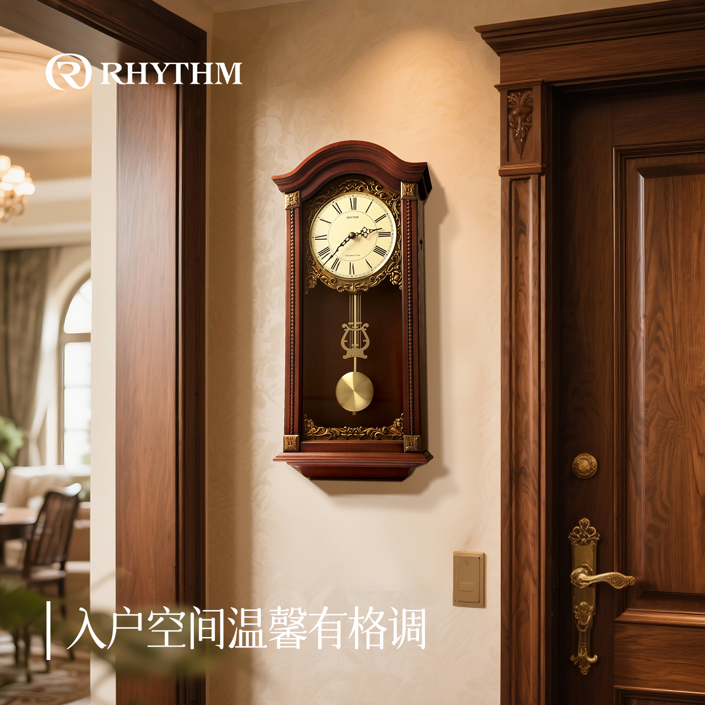 RHYTHM丽声日本静音实木大挂钟客厅家用2025新款 创意挂表时钟挂墙