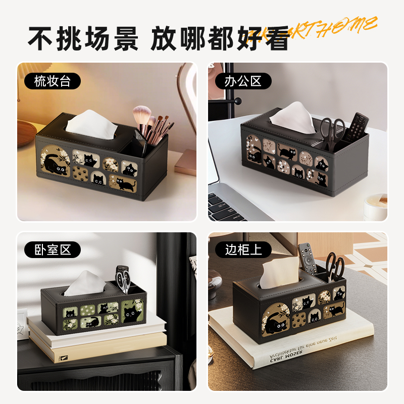 中古风高档纸巾盒遥控器收纳盒客厅茶几桌面抽纸盒复古轻奢纸抽盒