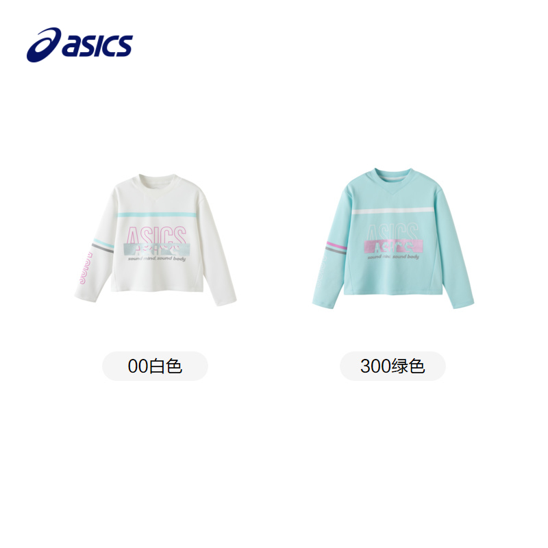 女儿童长袖 2025年春季 舒适柔软针织卫衣跑步衣 亚瑟士童装 asics
