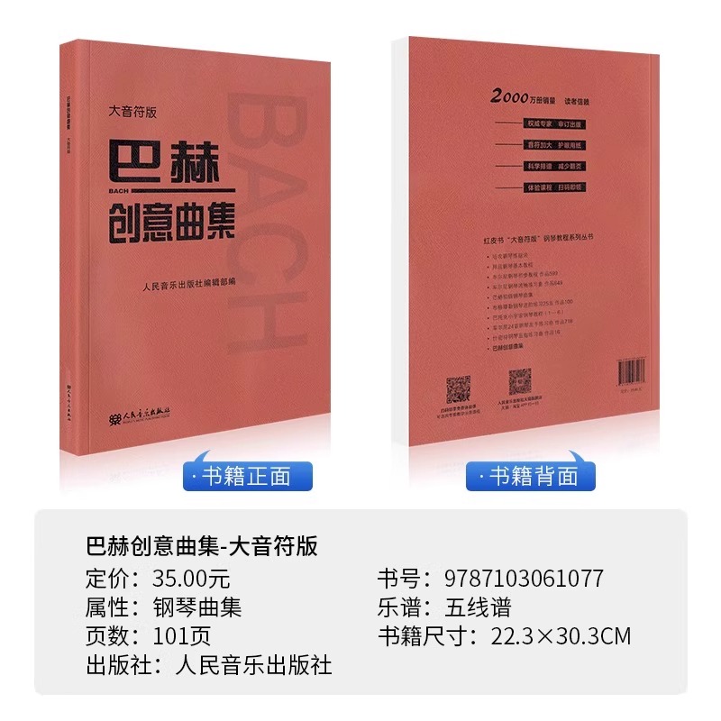 社大字符保护眼睛 人音小巴赫初级钢琴曲集钢琴书籍初级巴赫小步舞曲钢琴谱钢琴练习曲琴谱初级钢琴教程材人民音乐出版 大音符版