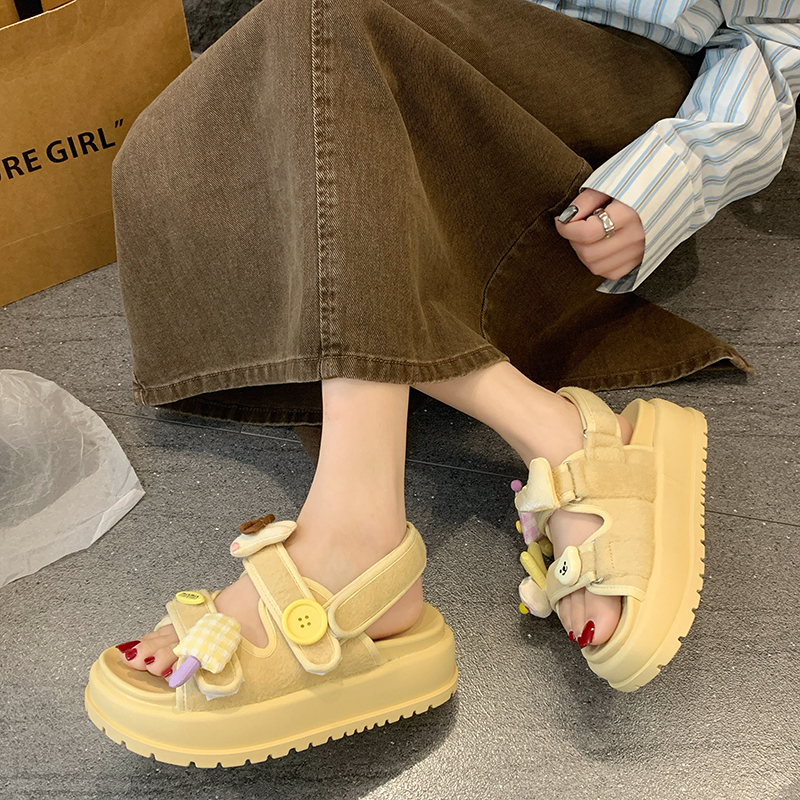 可爱卡通小熊一字扣带魔术贴凉鞋 沙滩凉拖鞋 女款 新款 2025夏季 时尚