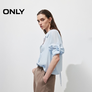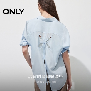 宽松衬衫 轻薄莱赛尔蝴蝶镂空通勤翻领七分袖 女 新款 ONLY2025秋季