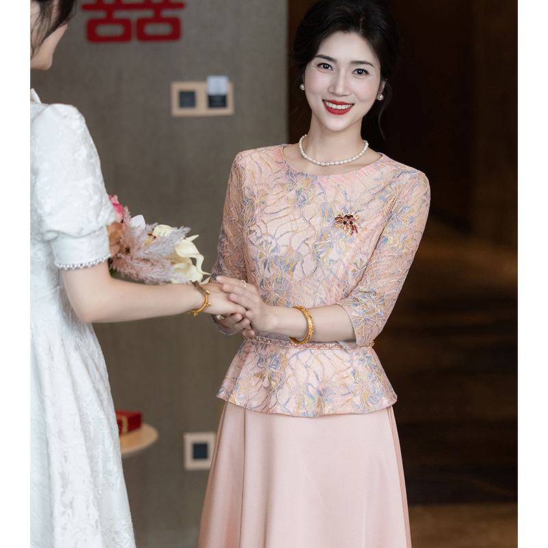 婚礼婆婆旗袍复古长款 旗袍 酒红色醋酸缎提花传统婚礼妈妈婚宴秋季