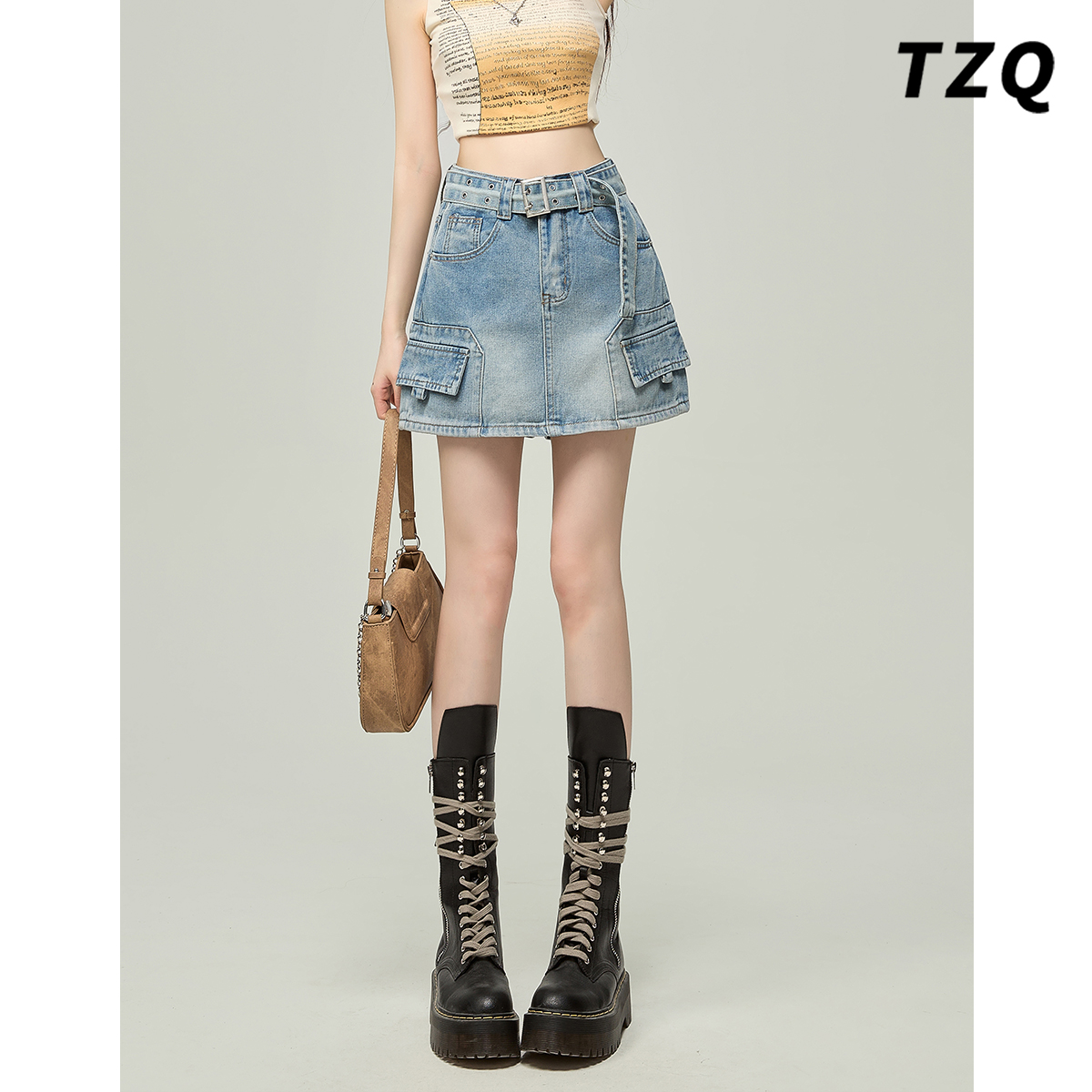 复古格纹半身裙女高腰小个子时尚 新款 短裙 BABY2025年秋季 BANANA