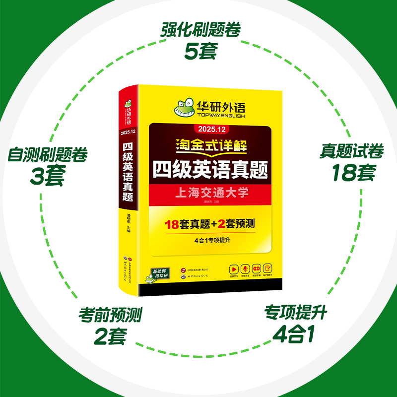 华研外语淘金式 详解四级英语真题备考2025年12月大学英语四六级考试历年真题试卷词汇单词默写本阅读听力翻译写作文专项训练资料书