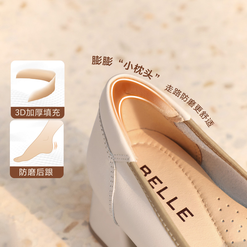 B2616CQ5 不累脚粗跟尖头女浅口单鞋 百思图25秋商场新款 裸色高跟鞋