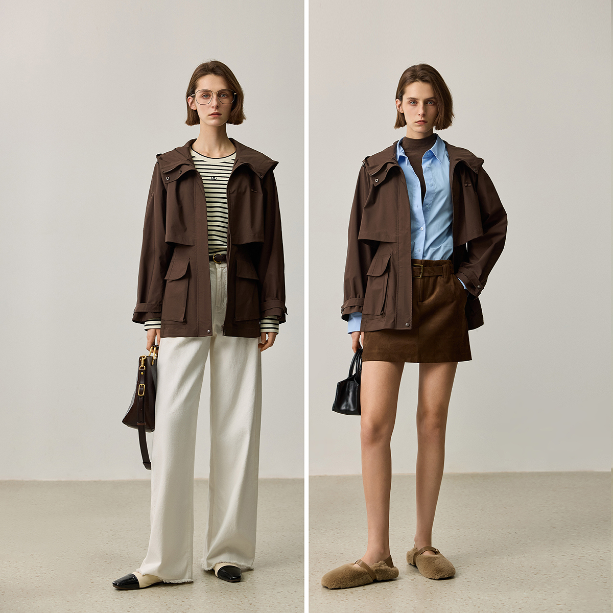 夹克外套 复古休闲连帽抽绳百搭宽松通勤风衣式 LILY2025秋新款 女装