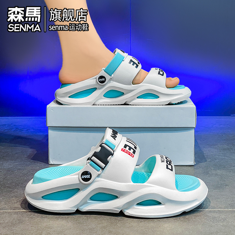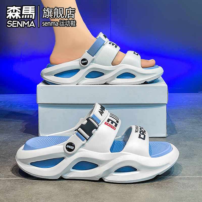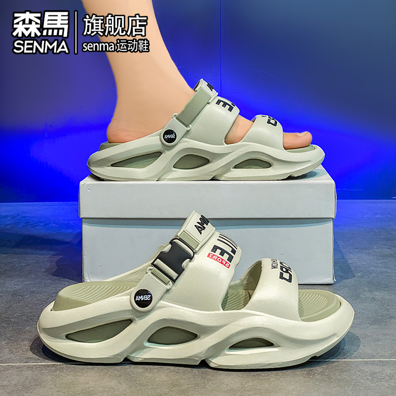 外穿防滑防臭踩屎感两用网红超火厚底增高沙滩凉鞋 森马拖鞋 男夏季