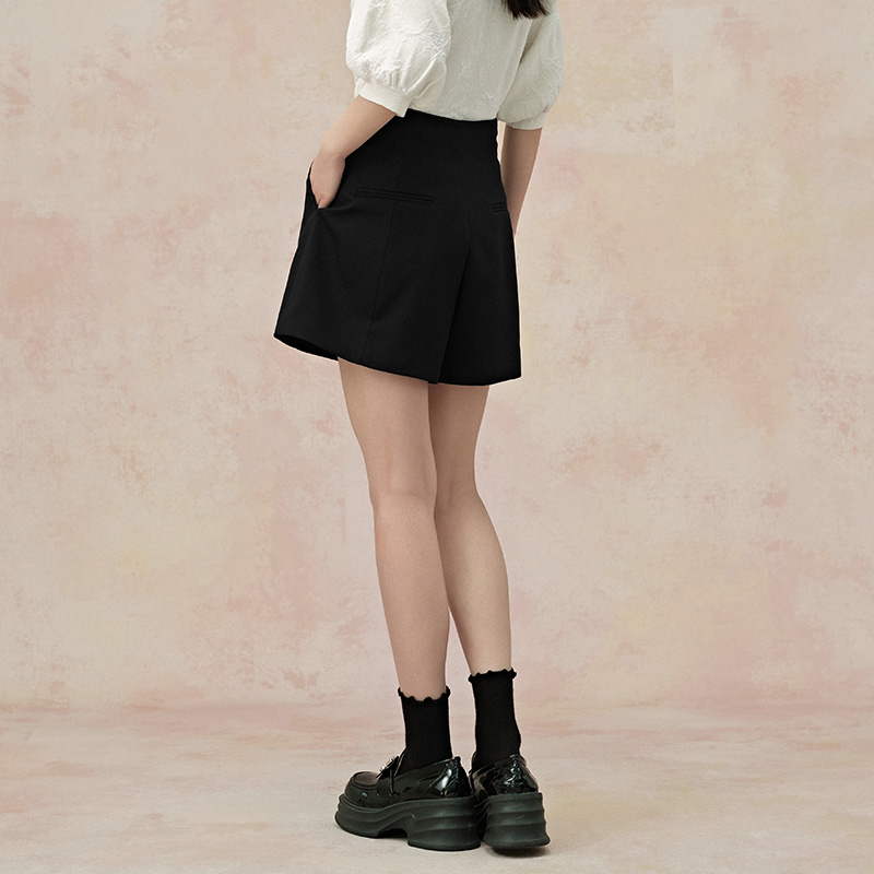裤 女2025夏宽松显瘦小个子西装 休闲裤 PIT黑色A字直筒阔腿短裤