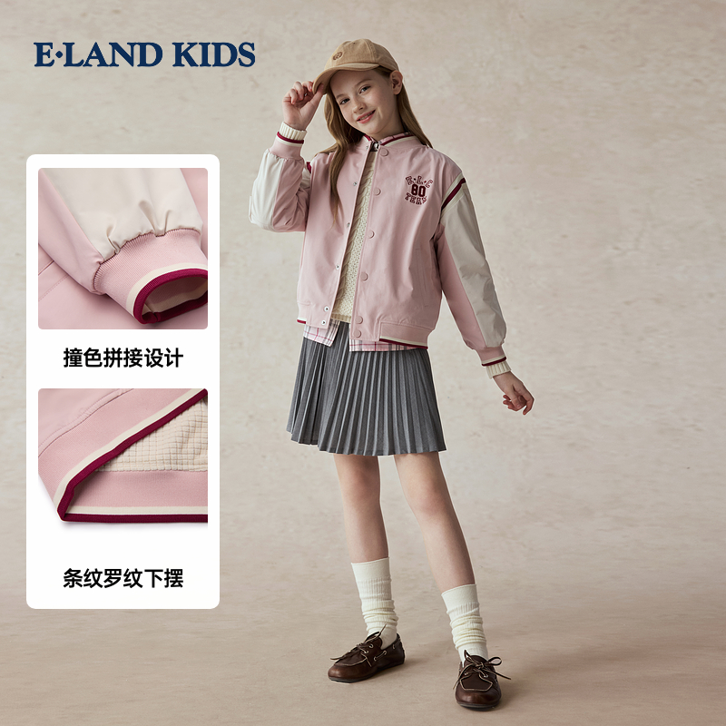男女童棒球服25秋新品 kids衣恋童装 eland 摇粒绒内胆外套 加绒