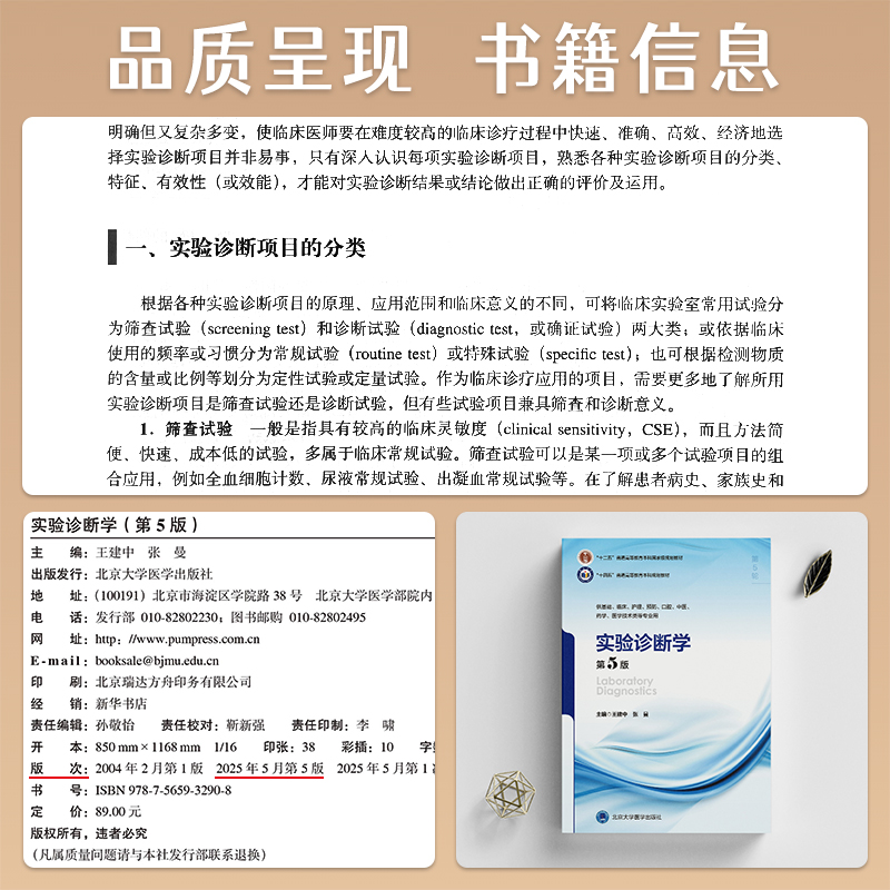 十四五普通高等教育本科规划教材 王建中 社 第5版 9787565932908 北京大学医学出版 第五版 主编 实验诊断学 张曼