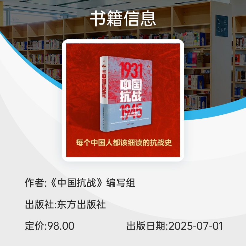 许多重大历史问题进行全景式 博库网 中国抗战 社 东方出版 描述 浴血奋战以及抗战中 对中华民族 编写组 1945 中国抗战1931
