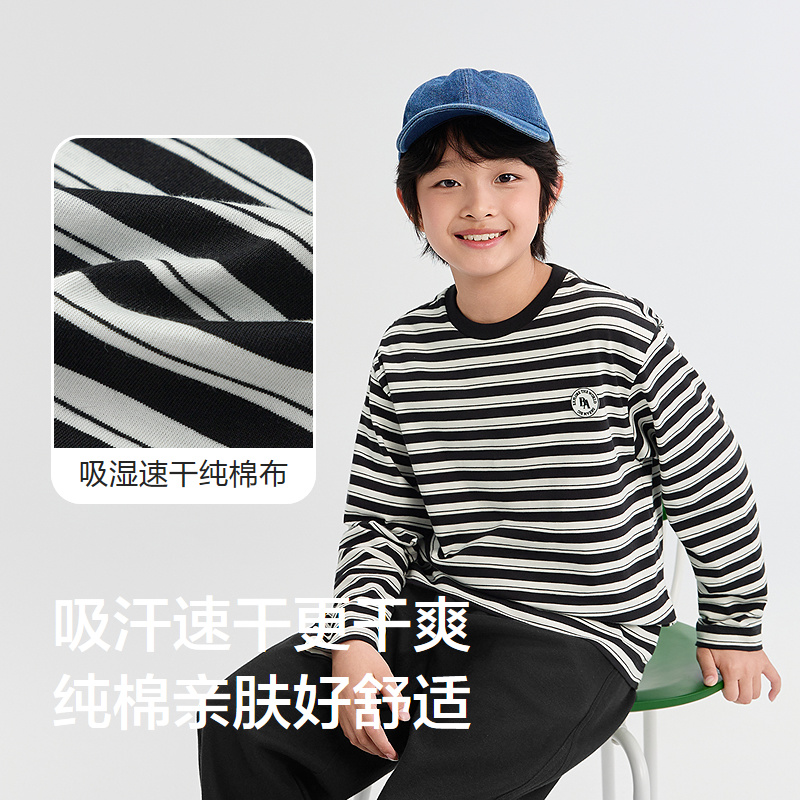 长袖 马克华菲2025春抗菌季 男童打底衫 童装 儿童T恤撞色嘿jz 新款
