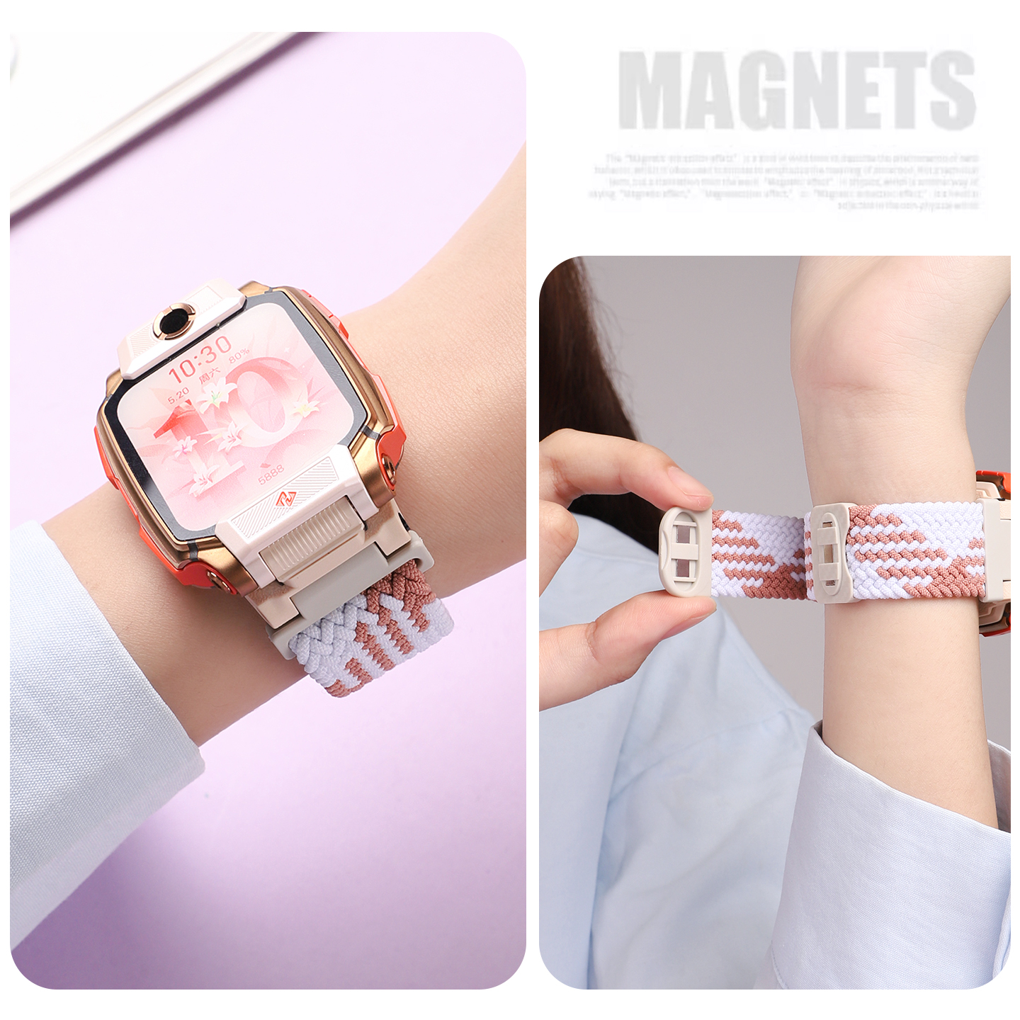 Q2A 适用于小天才儿童电话手表Z6Pro表带Z11尼龙编织z10磁吸闪扣z9腕带Q3 Z1S替换带Q1A z8少年版