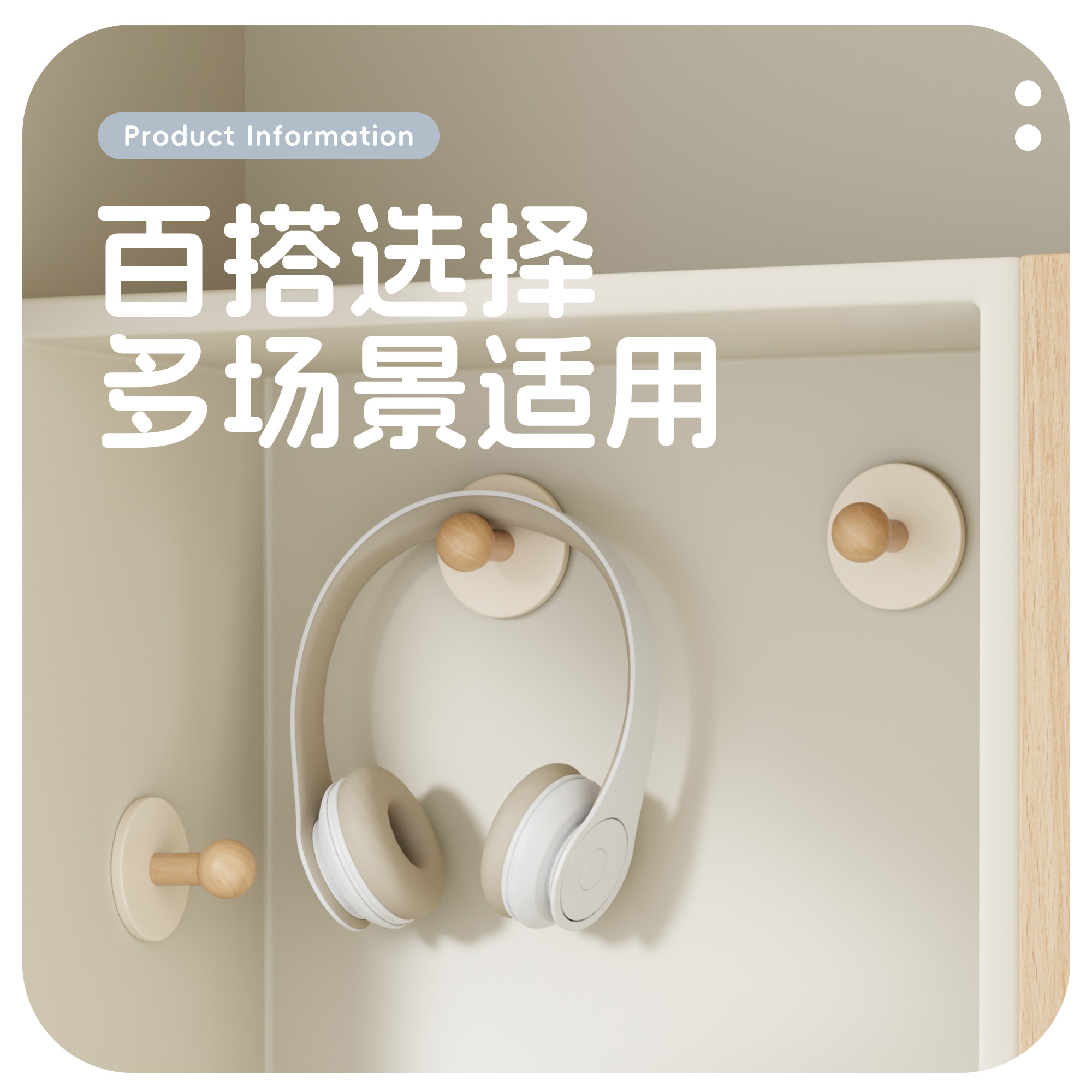 奶油风挂钩强力粘胶免打孔浴室门后挂衣钩墙壁挂毛巾衣帽粘钩实木
