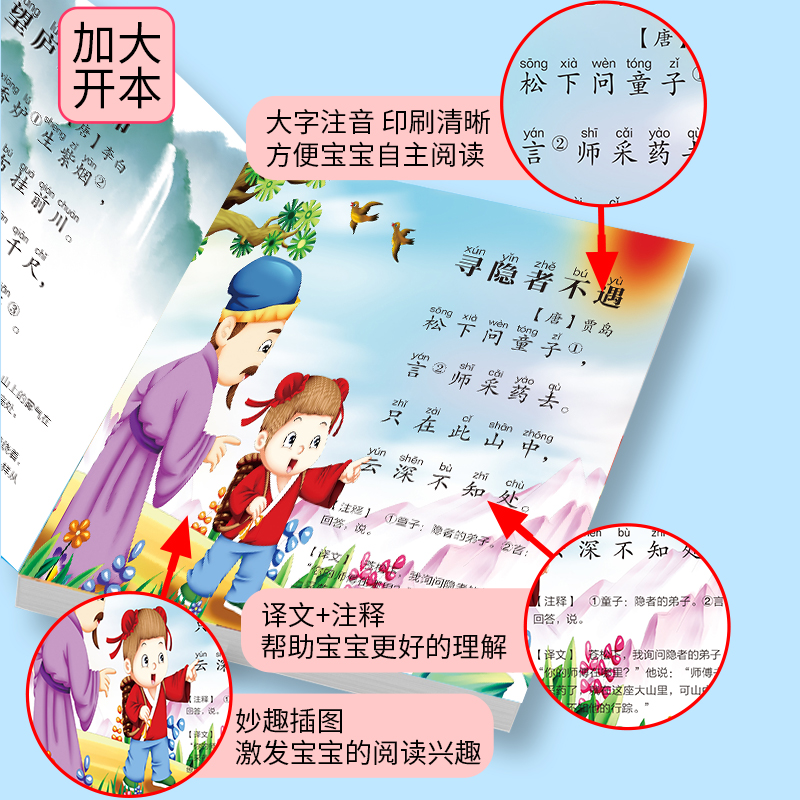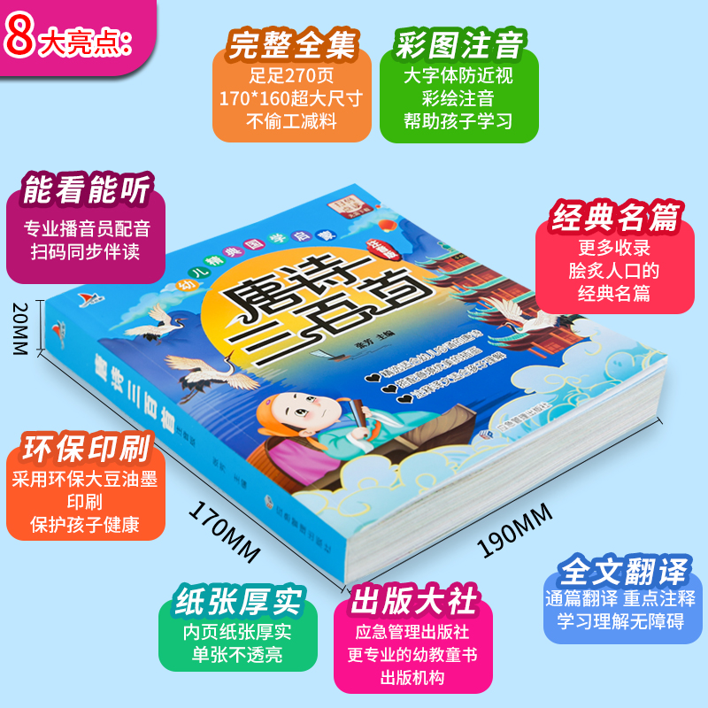 读物小学生年级课外读物国学经典 点读精选儿童易理解古诗搭配优美插画幼小衔接国学经典 儿童亲子系列 唐诗三百首扫码 大开本注音版