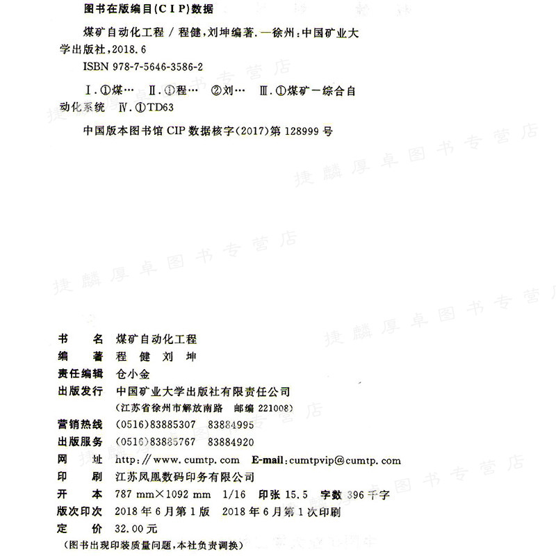 中国矿业大学出版 刘坤编著 社 程建 煤矿自动化工程