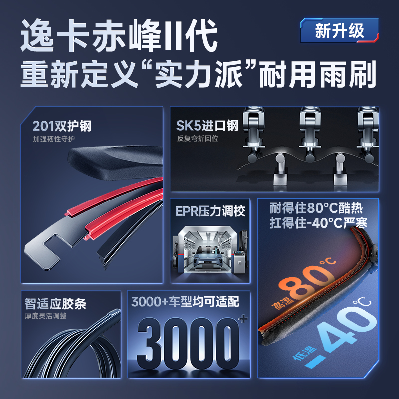 六层胶条雨刮器汽车无骨雨刷静音双胶条前雨刷片原装 合金钢片