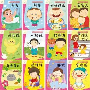 洗漱 绘本 我会表达 一起玩 宝宝生活能力培养游戏书 刷牙 好朋友 睡觉 好好吃饭 注意安全 全套12册 穿衣服 拉便便 爱家人懂礼貌