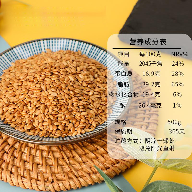 熟黄金亚麻籽500g即食可打粉内蒙特产熟胡麻亚麻籽仁粒亚麻酸代餐