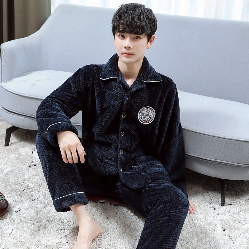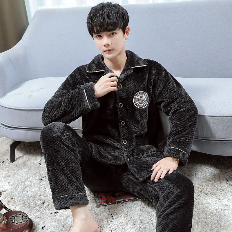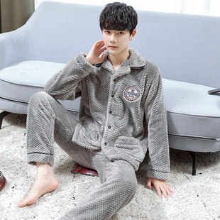 冬天套装 秋冬法兰绒家居服男款 加厚加绒保暖男士 珊瑚绒睡衣男冬季