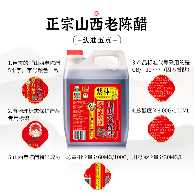 紫林正宗山西老陈醋6年陈酿6度酸2L桶装 4斤国标19777山西特产家用