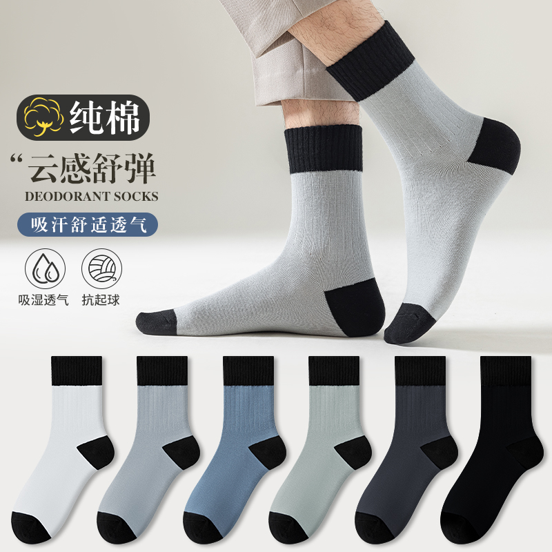 亲芙米男士 透气吸汗运动袜 中筒袜春夏防臭抗菌休闲袜亲肤舒适薄款