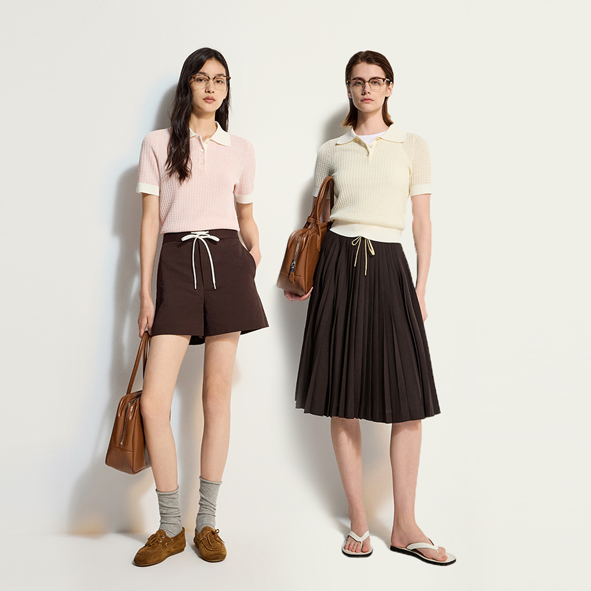 短袖 新品 针织衫 撞色2025夏季 女polo衫 OCHIRLY欧时力仿亚麻氧气衫