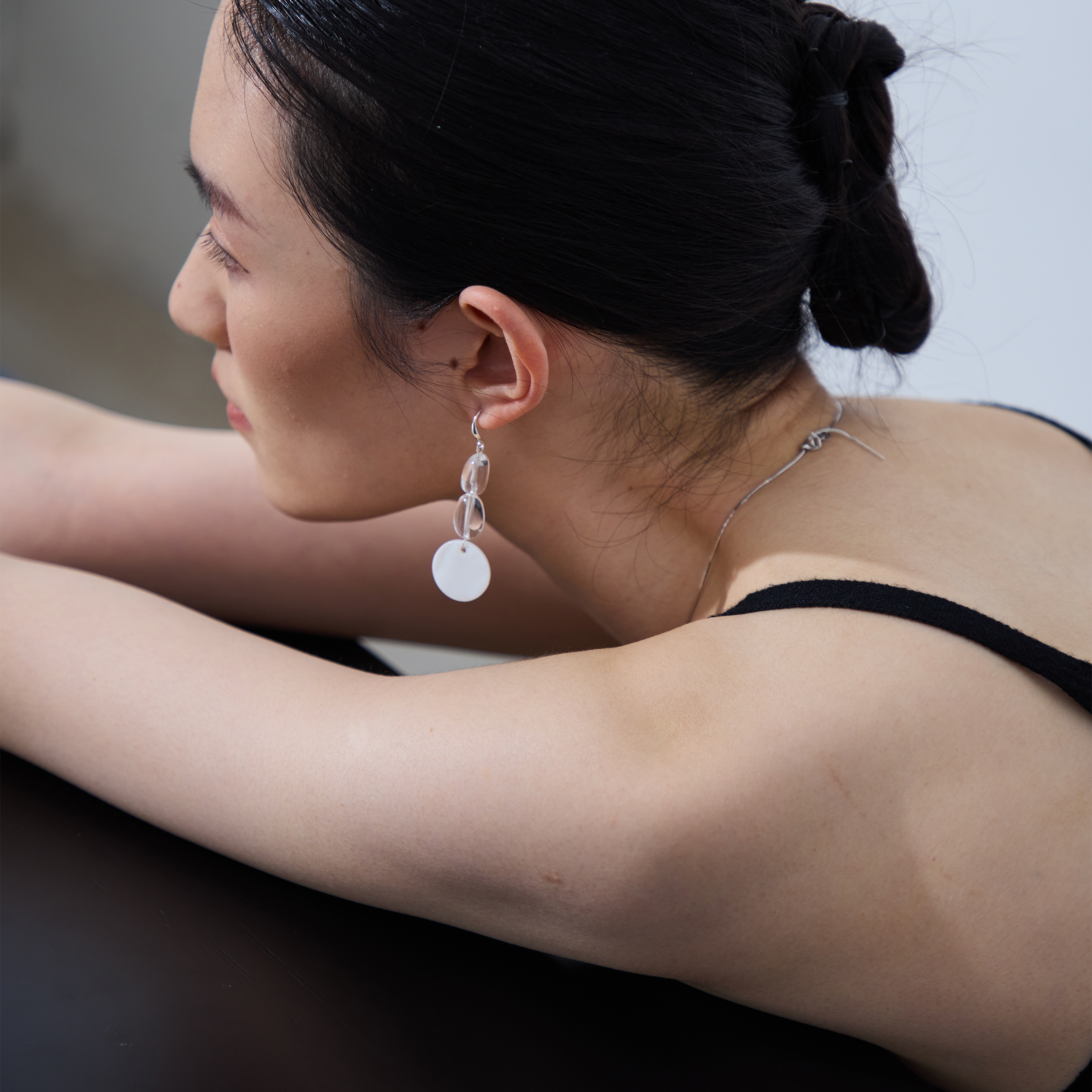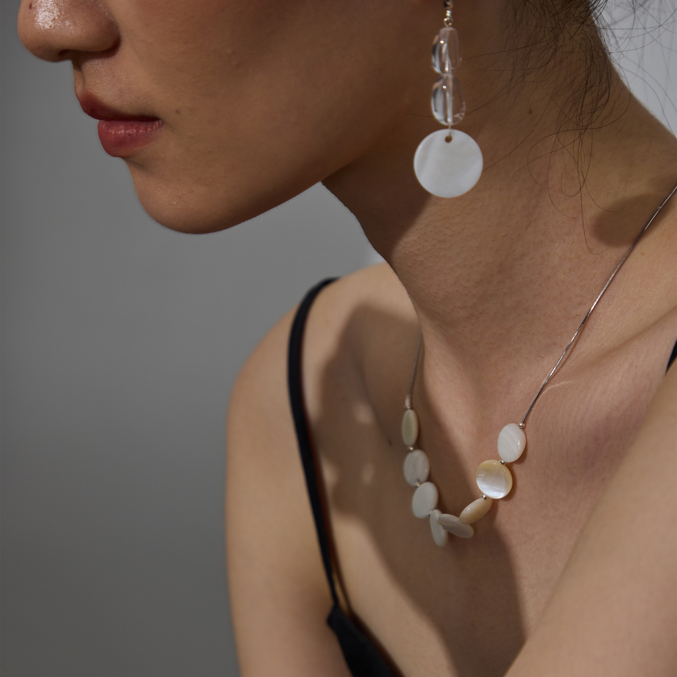 S925纯银天然不规则耳环圆片项链 白昼见日月 NOEND 胡静怡同款