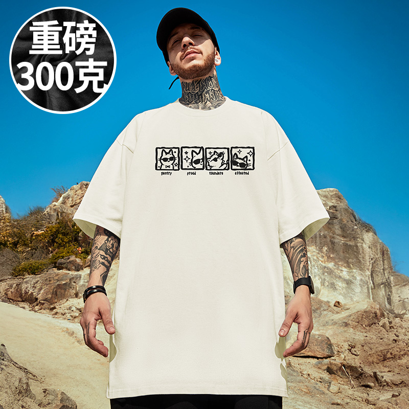 夏季 100%纯棉300g重磅潮牌宽松T恤短袖 胖子半截袖 男装 加肥加大码