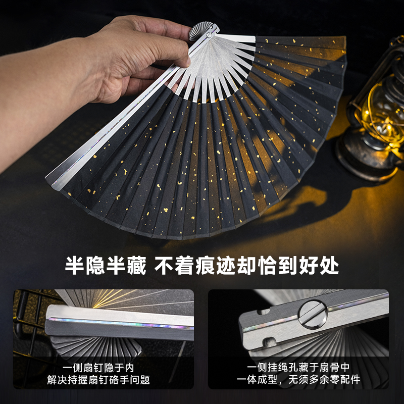 TITANER北斗作钛合金中国风便携金属折扇松紧调节送礼战术防身