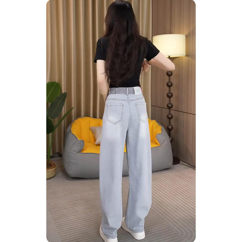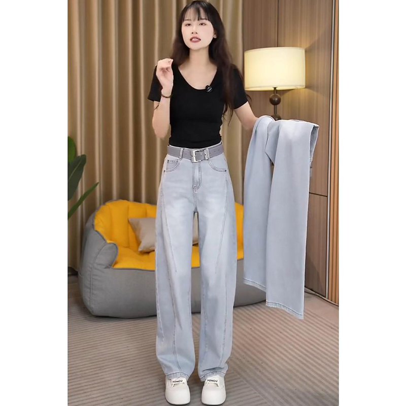薄款 女夏季 浅色裤 子2025新款 今年流行 宽松显瘦阔腿裤 弯刀牛仔裤