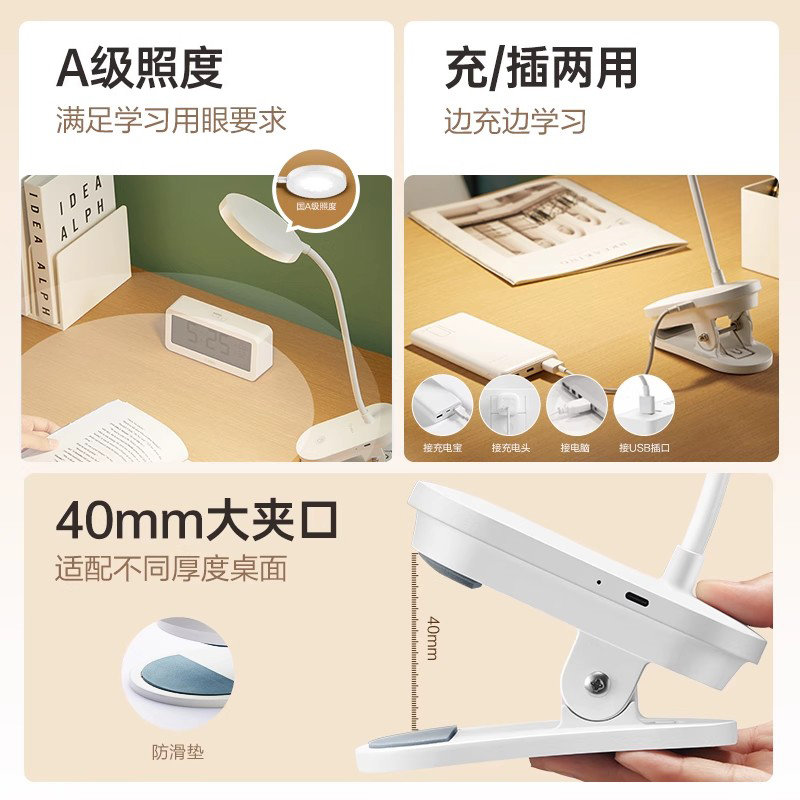 公牛充电式 卧室床头灯 夹子小台灯大学生宿舍护眼学习阅读专用夹式