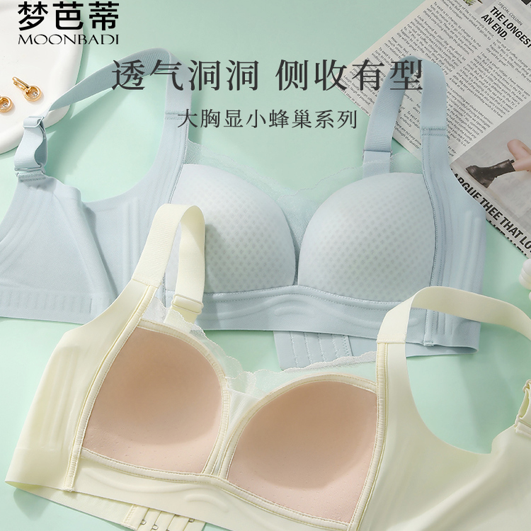 梦芭蒂冰丝大胸显小内衣女无痕夏薄款 防下垂塑形收副乳全罩杯文胸