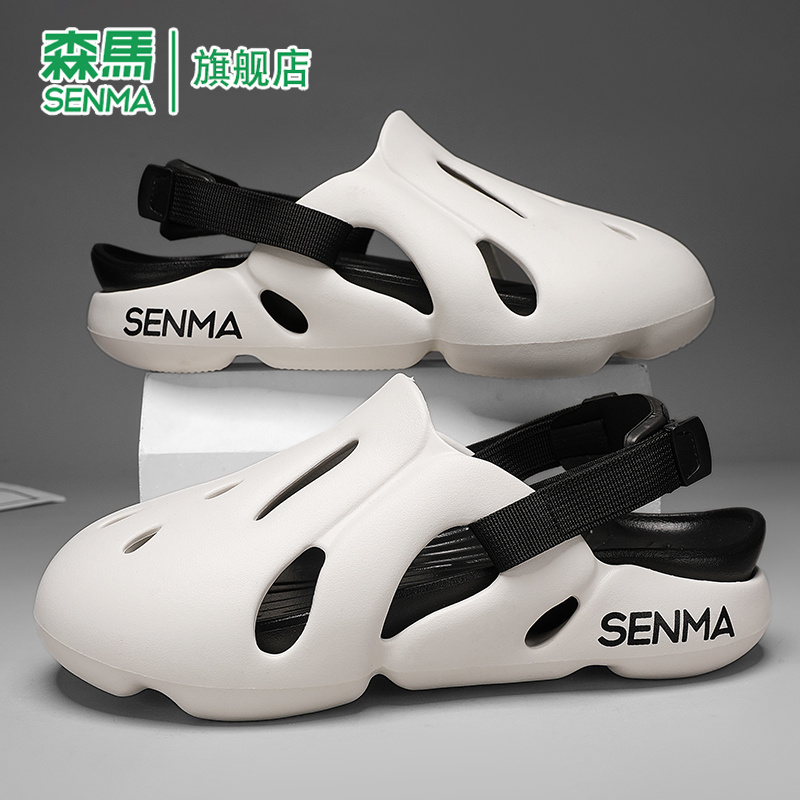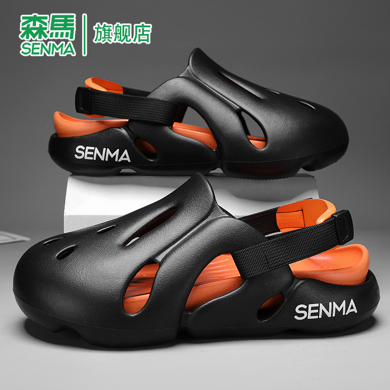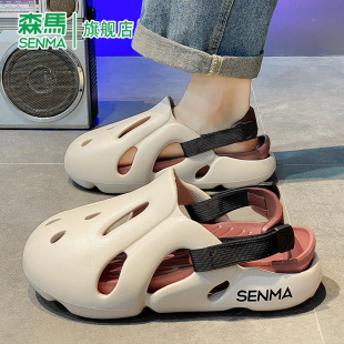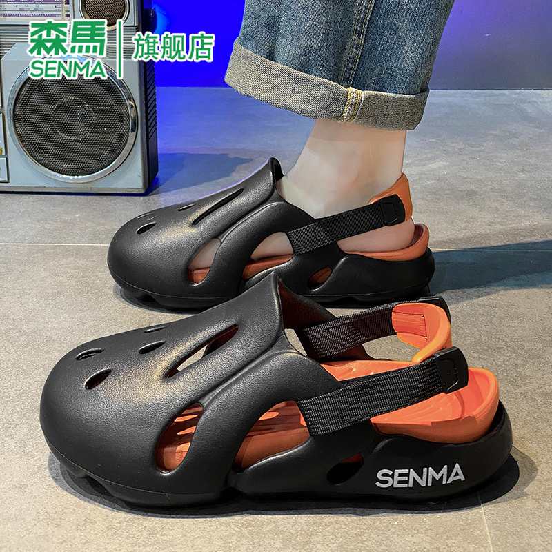 男款 运动防滑防臭半托沙滩凉鞋 夏季 男士 外穿踩屎感拖鞋 森马洞洞鞋